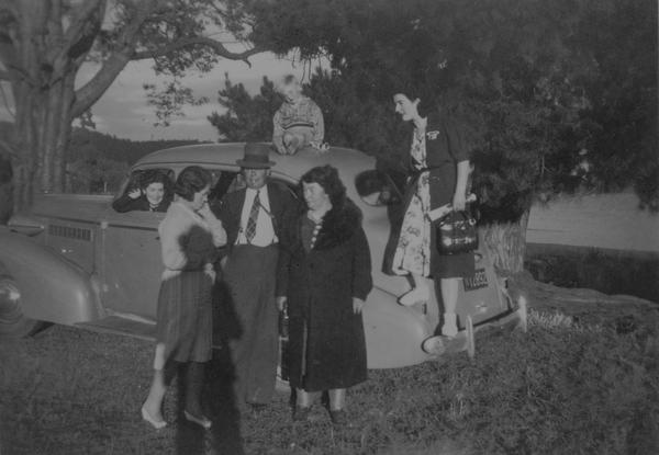 After visiting Mount Wellington the party headed to another popular tourist attraction - Hastings Hot Springs. Hastings Caves and Thermal Springs are located in Huon Valley about 90 minutes drive from Hobart on modern roads. It must have taken longer in 1940. The house with two gables in the background in this photograph is still there and has not changed much in 80 years.