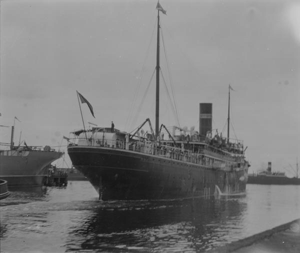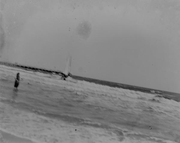 The beach scene is most likely this photograph which unfortunately is slightly out of focus. The Steam Ship Kyarra is seen on the film negative. This luxury liner was built in 1903, converted into hospital ship in 1914, and then into a troop transport in 1915. On 26 May 1918 SS Kyarra was sunk by German Submarine UB-57.