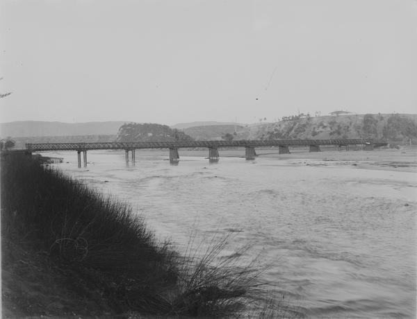 The truss bridge on the third plate was not identified. There were a number of historical bridges of similar design in New Zealand, most were destroyed by floods, demolished and replaced by modern steel and concrete constructions.