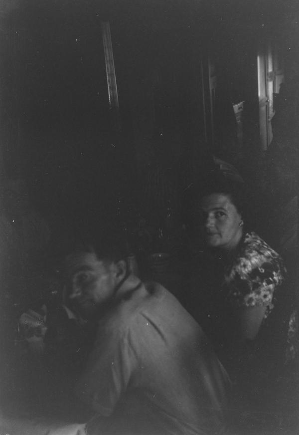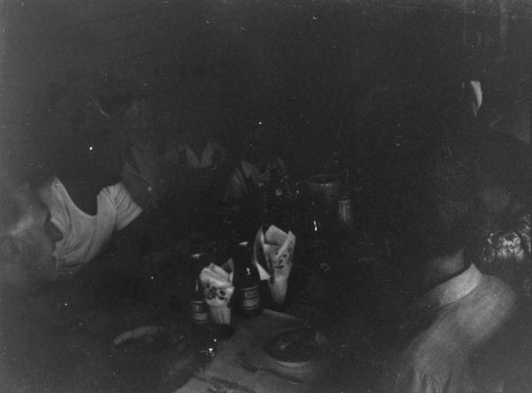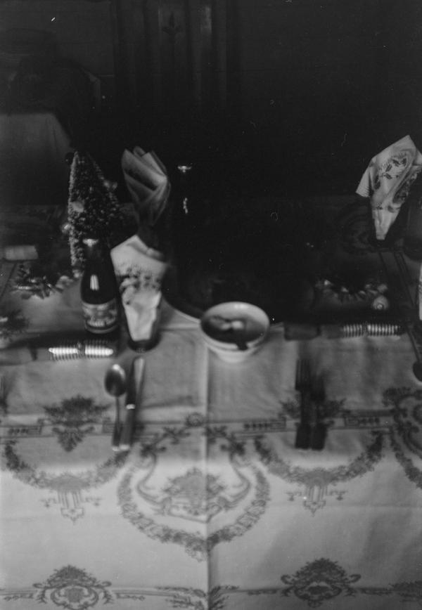 If you look carefully you'll see a small Christmas Tree on the table suggesting the event was a Christmas Dinner. We don't know what year it was. Some faces are recognisable. We saw them on other shots.
