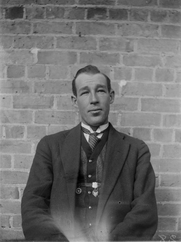 The fact that the photographer consistently misspelled the word negative indicates that he only learned his art practically. The request to keep the order must have been carelessly and repeatedly ignored during the century after the photographer left his note. The numbers on the plates are 15, 29, 31, 30, 26, 18 and 28. This negative of a person in a military uniform does not have a number and seems to come from a different batch.