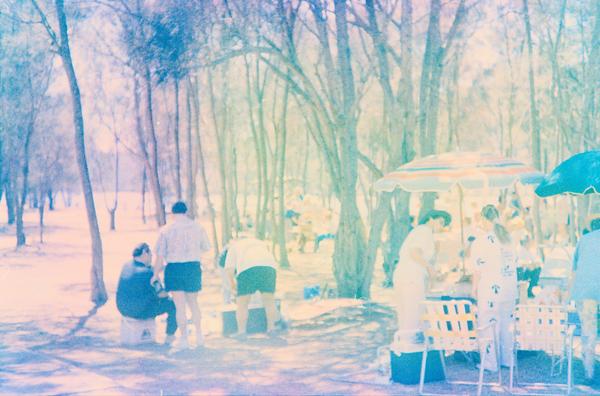 Many frames in this 24 exposure roll are out of focus. There is heavy green fog, and the dyes are degraded. There is practically no magenta dye left resulting in almost complete absence of green colour in the images. Despite this and some lack of experience on the side of photographer there is something attractive in the weird but subdued palette of these images.