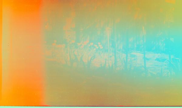 The results are not very encouraging. Sadly, we won't know what was the colour of these tulips. Better quality could be achieved if the roll was developed as black-and-white.
