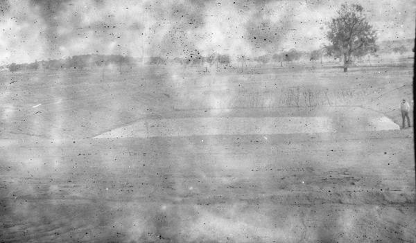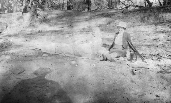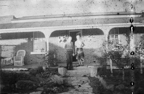 The roll was developed in Barry Thornton's two bath developer (4.5 min + 4.5 min). As usual, there is a lot of fog and some damage to the emulsion. After a bit of post-processing six images were recovered from this roll. The last two remained unexposed. The photographer included his shadow in one of the shots. He held the camera at a chest level. This was the only option with a box camera. More advanced cameras would normally have a wire-frame viewfinder as well as a brilliant finder which would allow the photographer to shoot from a head level.