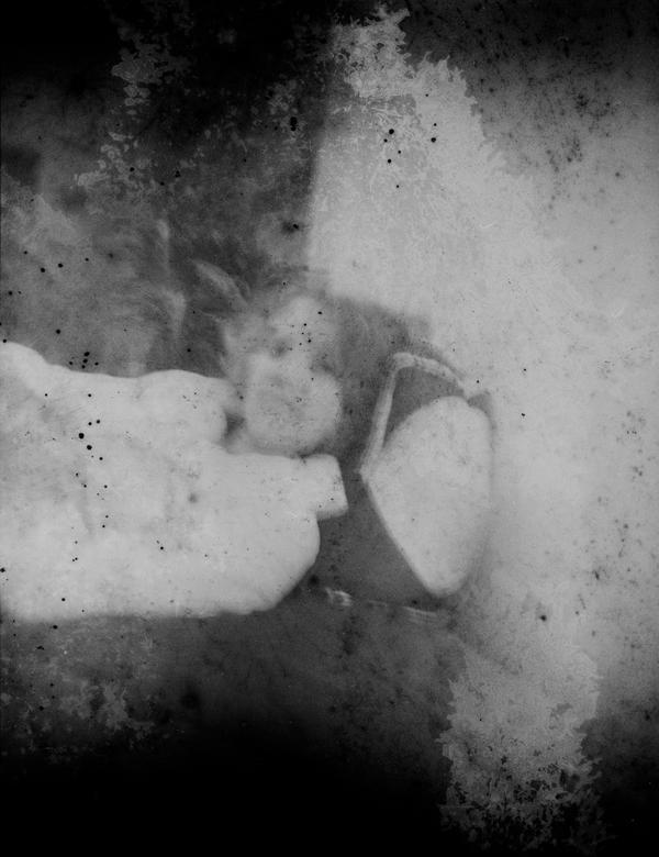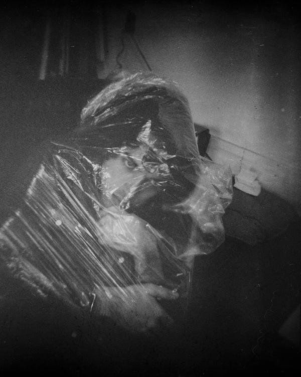 The roll was processed in Barry Thorntorn's two bath developer (4.5 minutes in Bath A and 4.5 minutes in Bath B at 20 °C). There were only three exposures on the roll taken indoors under available light. For some reason the second frame on the roll is more degraded than the others. The subject of the last image is somewhat disturbing though pictorially the photograph works quite well.