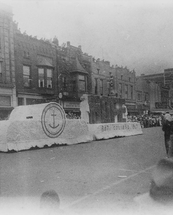 The whole roll was shot from one position. With bit of research the location and the event were identified. This was Tulip Time Festival held annually in Holland, Michigan, USA since 1929. There's a shop sign "Holland Shoes", one of the floats has "Holland Furnace" on its side and "Welcome Holland Mich." above it. "Meyer Music" is a business in Michigan that was running for decades and still has a shop in Holland. Hope College was first opened in Holland in 1851. The date 1847 on the float must refer to the time Holland community was settled. Unfortunately, the other date is not easy to read, but it could be 1957. Is it the year the photograph was taken?