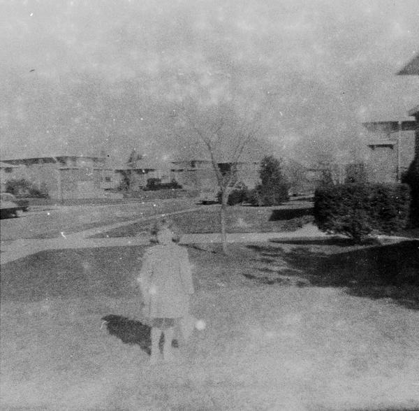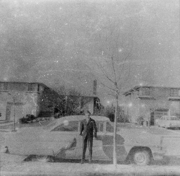Here we have classic family snapshots. Maybe someone was testing a new camera and just came out to their front yard to take some snapshots of the kids using the family car as a background. There is a stricking contrast between the condition of the film and the subject matter of these images. Everything was new when the pictures were taken: new suburb, new homes, shiny new cars, young trees on the front yards and small kids. There is also something disturbing in the way the figures seem to evaporate from the images.