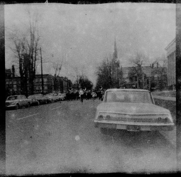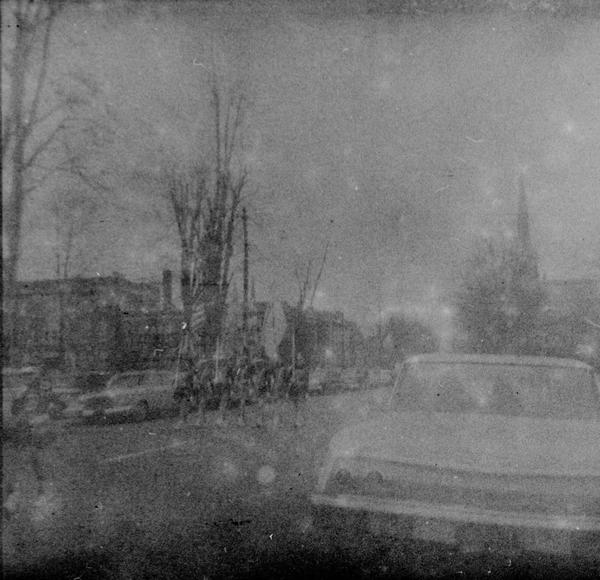 The roll was shot during a parade in a small American town. We see two veterans, one in a wheelchair, and one on crutches next to a Christmas tree on one of the floats with a "Christmas (for) Veterans" banner. Korean War would have finished years ago by 1963 so this must be Vietnam War veterans. Was this Veterans Day parade which is held on November 11?